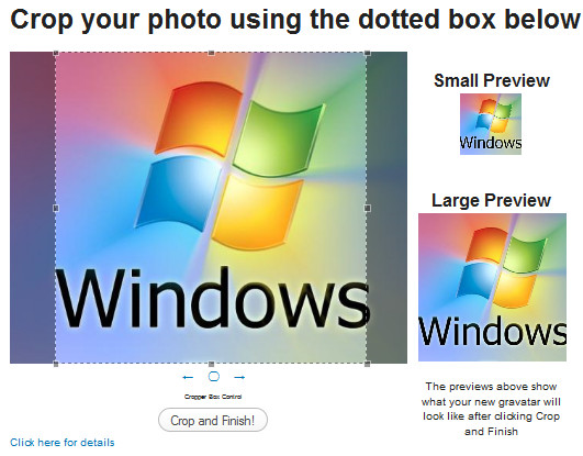 5、上传完成后,需要对图像进行剪裁,如下图,找个好角度,最后点击Crop and finish.