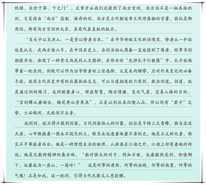 剑,早期是匕首式短剑,剑和刀一类,区别只在于单刃和双刃。剑又称:“轻吕”、“径路”,“长铗”。春秋末年,开始流行长剑。质地精良的宝剑大多出自南方,主要是吴、越(闽越)、楚、巴蜀。长剑出,短剑也不废。剑的历史是源远流长的。
