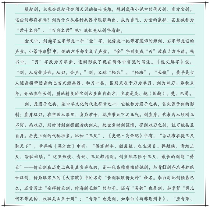 剑,古代兵器之一,属于“短兵”。乃是兵中王者,被称为“百兵之君”。古王皆有君子之气,亦有皇上君临天下之说,素有“百兵之君”的美称。古代的剑由金属制成,长条形,前端尖,后端安有短柄,两边有刃。现在作为击剑运动用的剑,剑身为细长的钢条,顶端为一小圆球,无刃。
