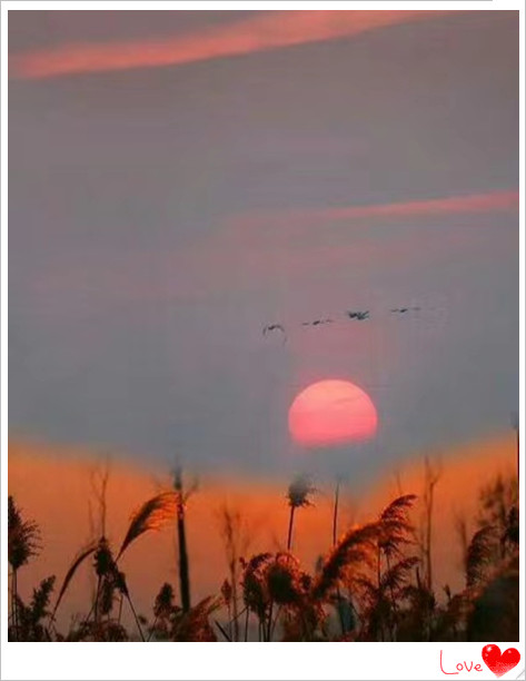 午后夕阳星光,秋风微凉村庄,落叶炊烟思量。寒雁绕空,三匝尤唤故乡。面对一湖水波